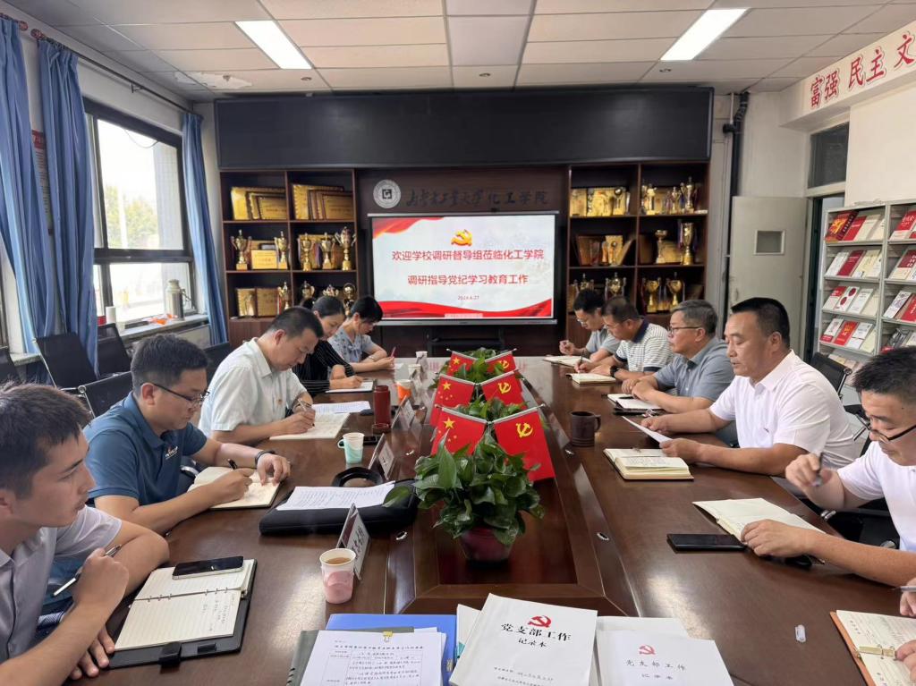 6月27日下午,学校调研督导组深入2007so太阳集团指导党纪学习教育工作。校党委委员、组织部部长王智广等一行5人,与学院领导班子成员、全体支部书记进行了座谈交流。座谈会由院党委书记王凯主持。