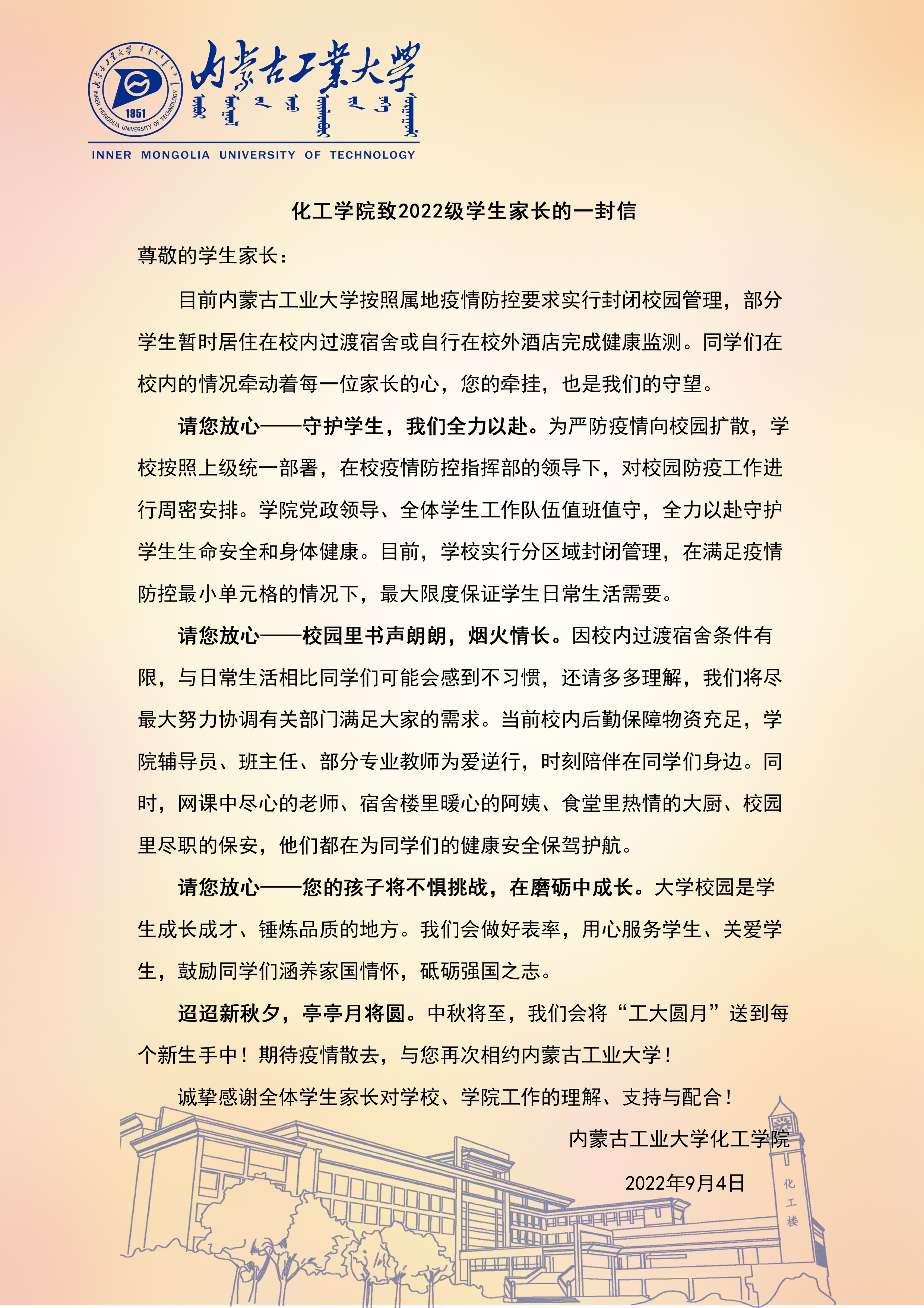 2007so太阳集团致2022级学生家长的一封信