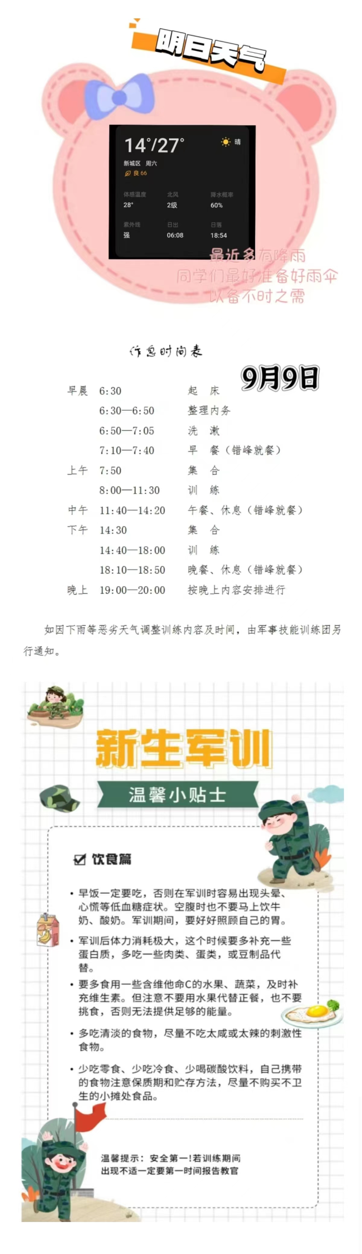 军训特辑|温馨提示9月9日军训日程安排