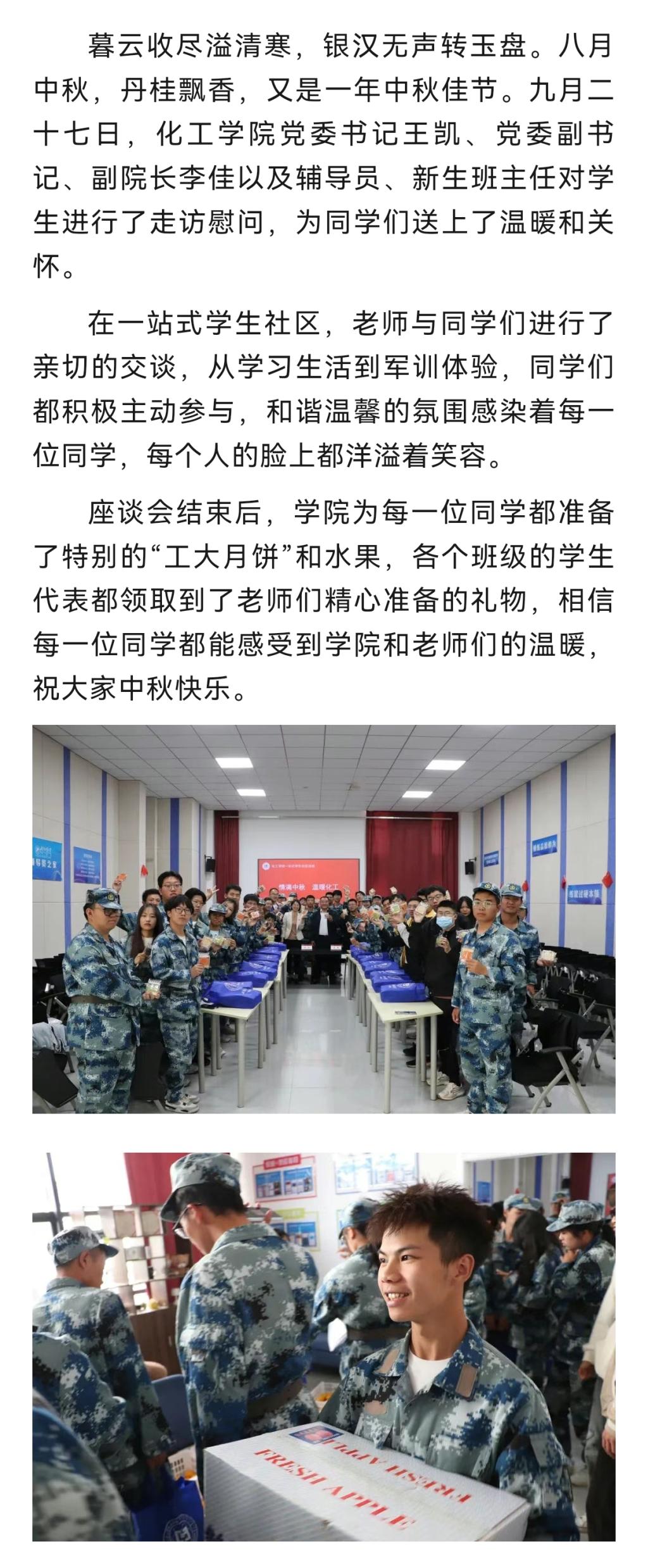 一站式学生社区建设|2007so太阳集团举行“情满中秋 温暖化工”中秋慰问活动