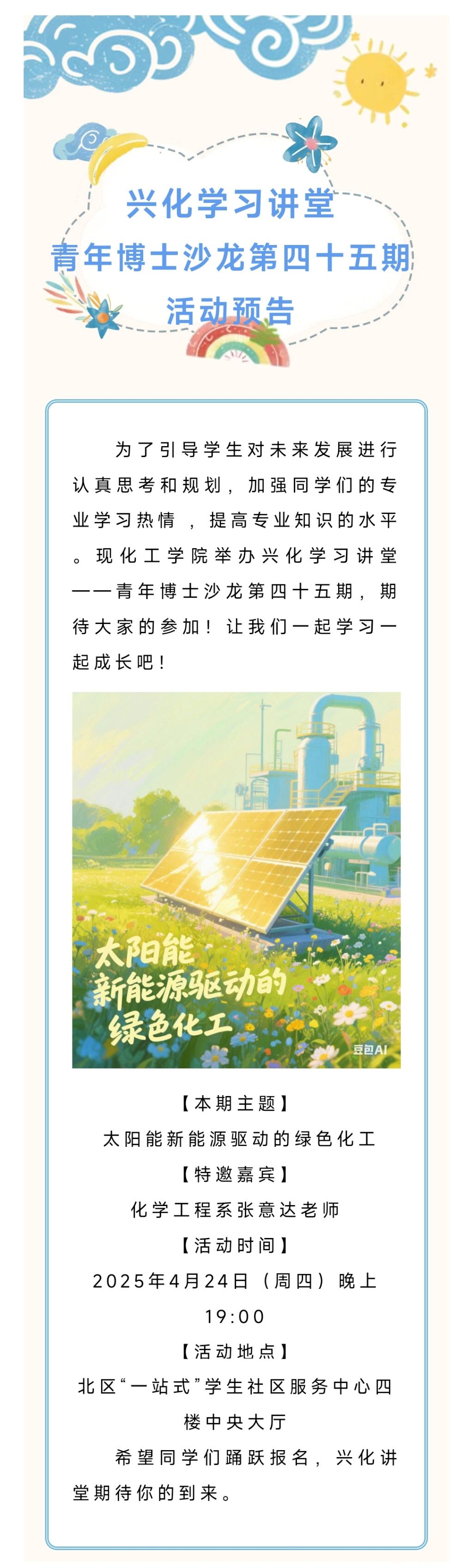 2007so太阳集团兴化学习讲堂|青年博士沙龙第四十五期预告